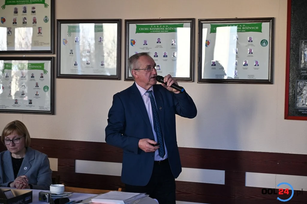 W dniu 19 marca 2025r. o godz.12.00- w drugim terminie, zgodnie z obowiązującym Statutem Cechu, w sali reprezentacyjnej Cechu – odbyło się Walne Zgromadzenie Sprawozdawczo- wyborcze członków oleskiego Cechu. Tradycyjnie już od lat o godz.10.00 w Kościele Św. Anny w Oleśnie odbyła się Msza Św. w intencji wszystkich zmarłych i żyjących rzemieślników. Ceremonię uświetniła orkiestra dęta składająca się z rzemieślników i sympatyków. Obecne były poczty sztandarowe Cechu i Zespołu Szkól Zawodowych w Oleśnie. Starszy Cechu Alojzy Bardorz z okazji obchodzonego jubileuszu Cechu 440 lat istnienia i 60 lat budowy ,,Domu Rzemiosła’’ przekazał na ręce proboszcza Parafii Olesna ,,PODZIĘKOWANIA’’ za dotychczasową współpracę na przestrzeni wielu lat.